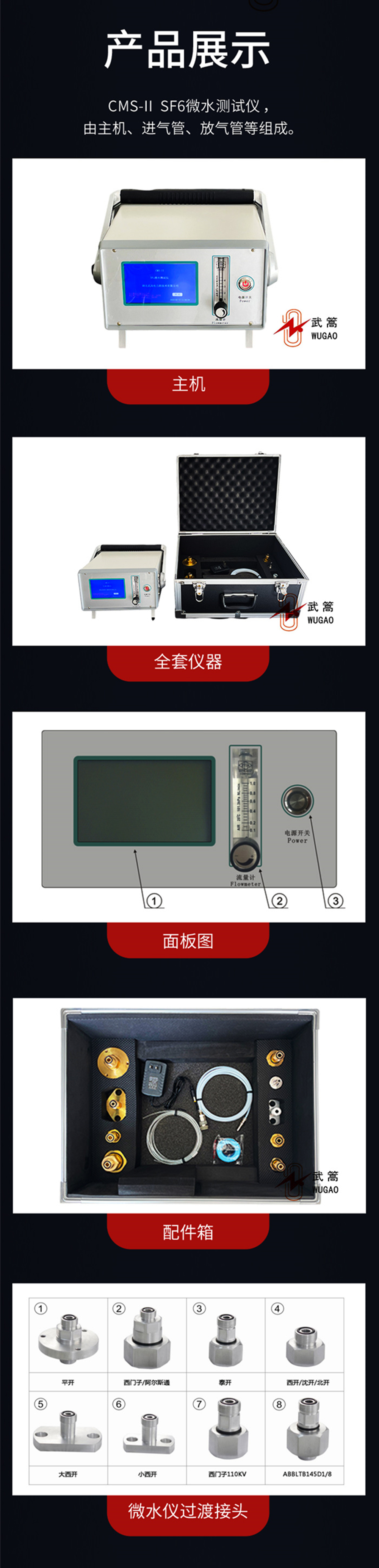 本儀器是依據(jù)國家電力行業(yè)標(biāo)準(zhǔn)DL/T506-2007《六氟化硫電氣設(shè)備中絕緣氣體濕度測(cè)量方法》,采用原裝進(jìn)口高精度露點(diǎn)傳感器和最新數(shù)字電路控制技術(shù)而研發(fā)設(shè)計(jì)的,是測(cè)量SF6及其他氣體中微量水分含量的高精度智能型儀器。
