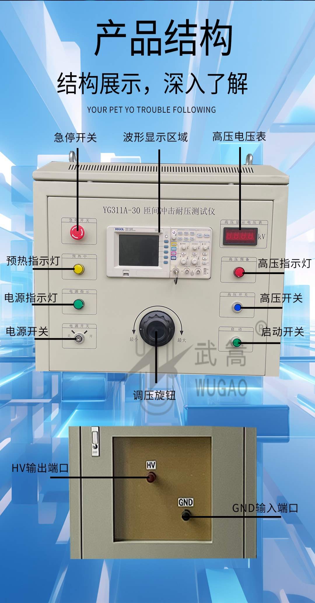 峰值電壓表顯示:0~30kV;最大輸出能量:22.5J;脈沖電容:0.05uF(也可按要求另選)。