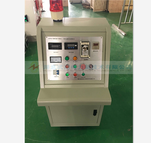 3.合上電源開關(guān),零位指示燈亮,按下合閘按鈕,合閘指示燈亮,接觸器吸合,調(diào)壓器帶電,此時(shí)可以進(jìn)行升壓試驗(yàn)。按升壓按鈕,升壓指示燈亮,密切注視高壓電壓和高壓電流表,將電壓調(diào)至需要的耐壓值,按下計(jì)時(shí)開關(guān),耐壓計(jì)時(shí),計(jì)時(shí)到達(dá)發(fā)出音樂聲,提醒降壓,按降壓按鈕,降至零位燈亮,按分閘按鈕,并斷開電源開關(guān),方可拆線。