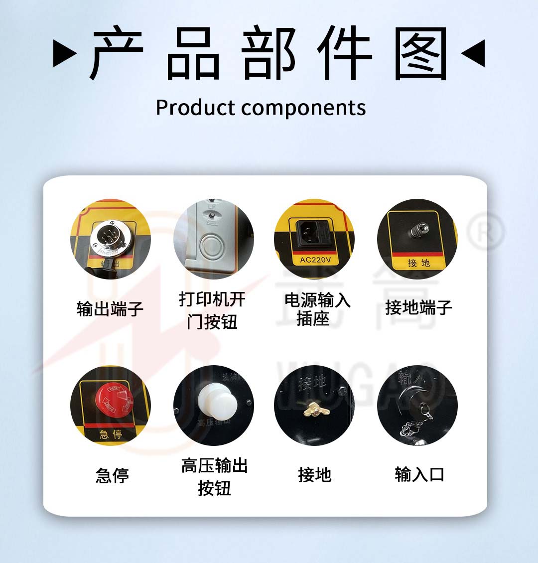 50/1.1 | 50kV (峰值) | 0.1Hz,≤1.1μF | 15A | 控制器:4㎏ 升壓器:40㎏ |